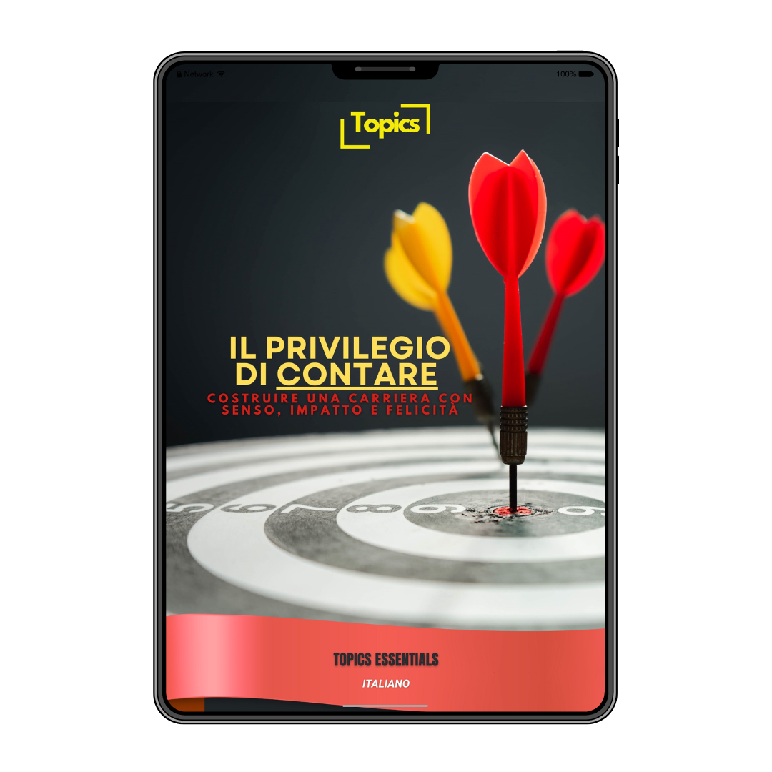 Il lavoro non dovrebbe essere solo un mezzo di sopravvivenza, ma un modo per sentirsi vivi. Questo ebook della collana Topics Essentials esplora tre prospettive decisive: Drive di Daniel Pink, che mostra come la motivazione autentica nasca da autonomia, maestria e scopo; So Good They Can’t Ignore You di Cal Newport, che smonta il mito del “segui la tua passione” e rivela il valore di costruire competenze rare; e The Second Mountain di David Brooks, che invita a guardare oltre il successo individuale, verso una vita guidata dall'impatto che lasciamo nella vita degli altri. Un percorso che unisce motivazione interiore, abilità concrete e senso di missione, per trasformare la carriera in qualcosa di più di un lavoro: un’espressione di chi siamo e di ciò che vogliamo lasciare.